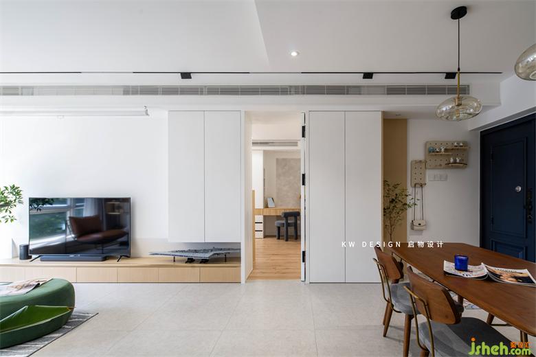 3. 全屋收納沿墻設(shè)置,客餐廳以低矮的收納為主保證空間的通透和開放。