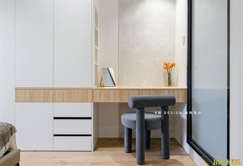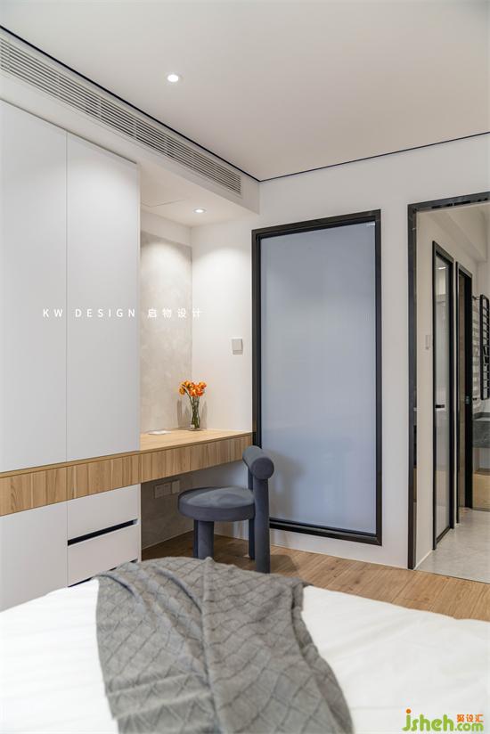 房門(mén)為了平齊客廳收納柜多與房間的過(guò)渡增加了四十公分,深圳家裝設(shè)計(jì)即使開(kāi)著門(mén)也不會(huì)見(jiàn)著床,保證隱私。