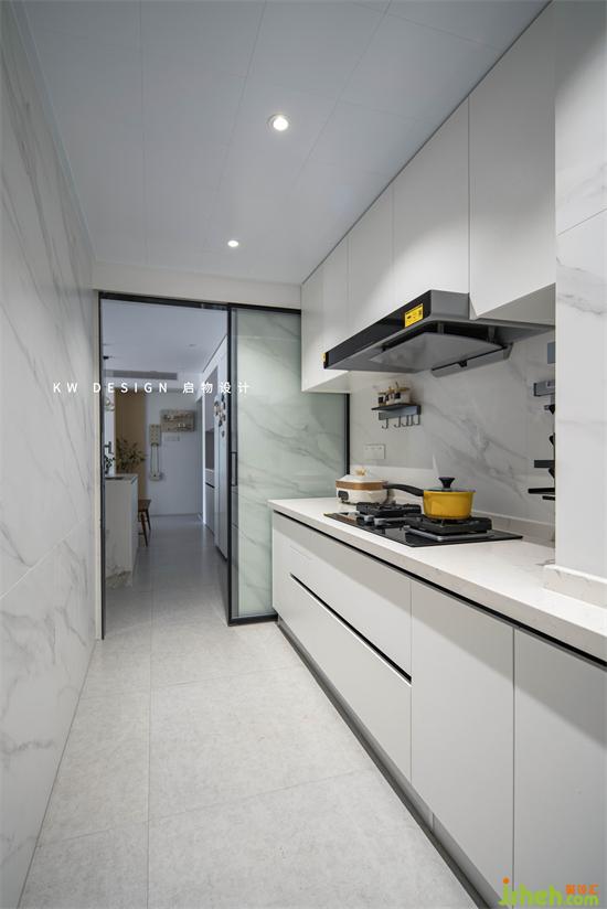 線(xiàn)性燈與墻面抽縫的統(tǒng)一,深圳家裝設(shè)計(jì)溫柔的球形點(diǎn)綴讓線(xiàn)面體的幾何關(guān)系與空間行成虛實(shí)交映的秩序美感。