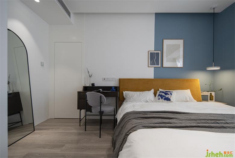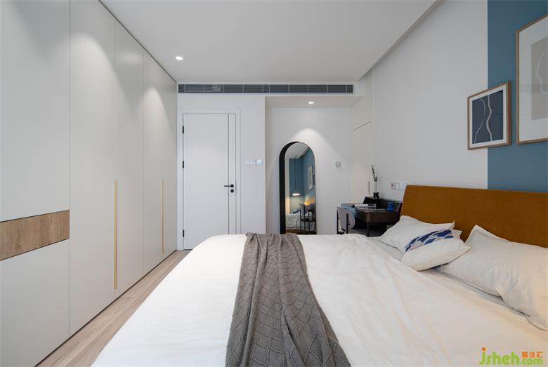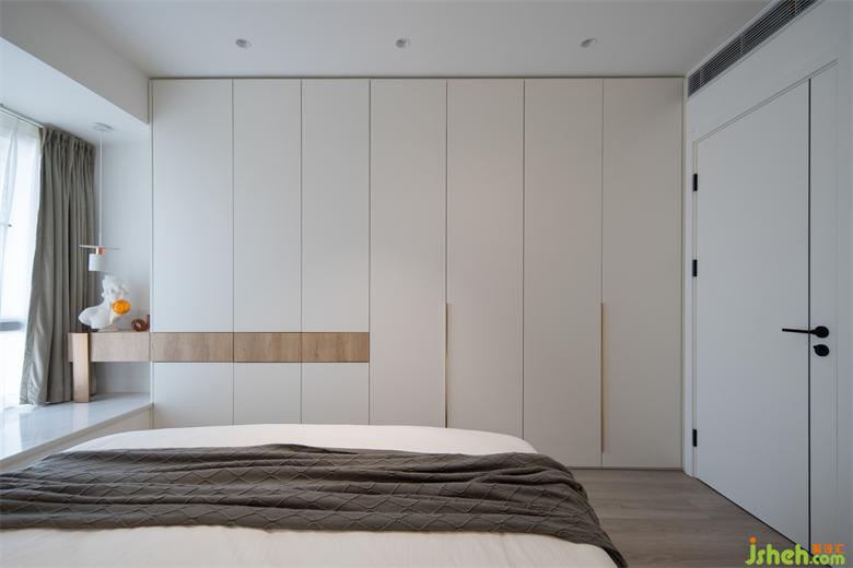 柜子延伸至飄窗,架出了一個小桌子,家裝設(shè)計營造出了順延感,這些小細節(jié)都讓家變得更美觀和舒適。衣柜也加入了一些原木元素,在白色中增加一份溫潤柔和。