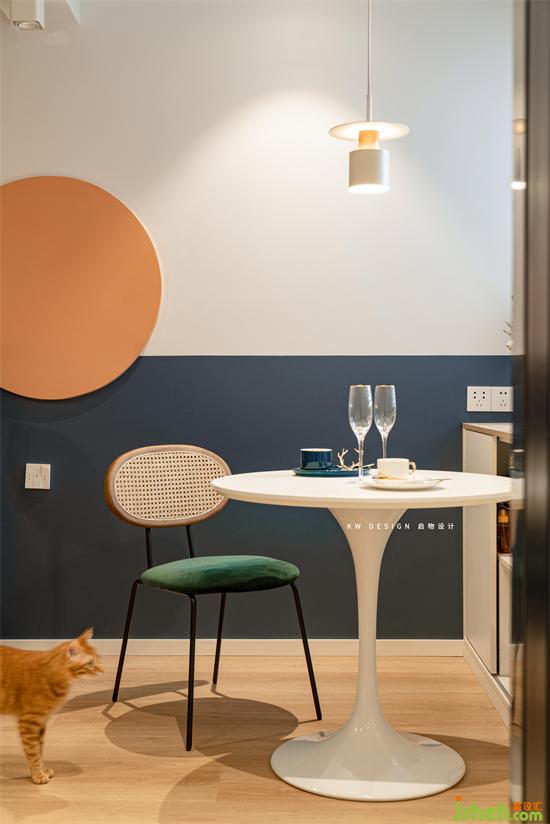 圓桌中心、吊燈中心、橫梁中心規(guī)劃在一個(gè)點(diǎn)上,有秩序的生活總是更舒心的,不是嗎?
