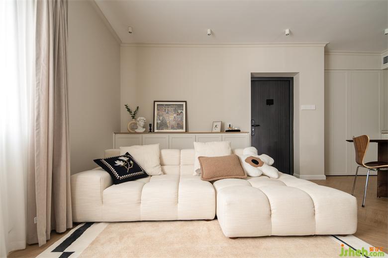 沙發(fā)由兩個1.2m的豆腐塊組成,輕巧軟糯的造型方便屋主根據(jù)心情喜好自由組合,改變或移動功能區(qū)。