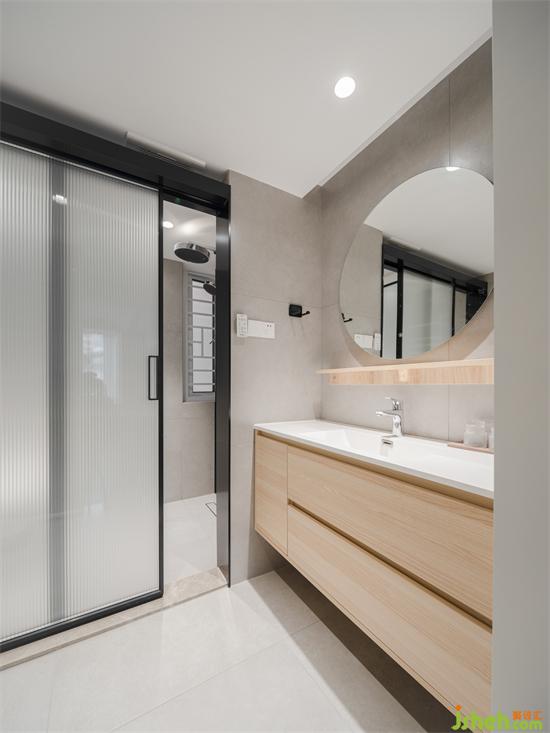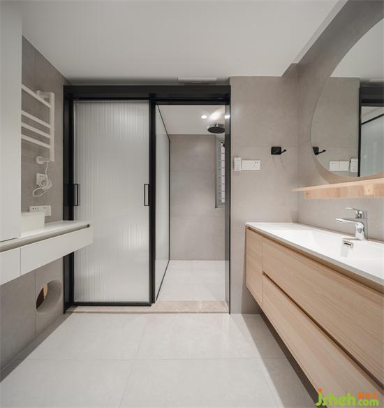 淋浴和馬桶區(qū)共用一扇移門,節(jié)省空間同時也滿足了日常使用。