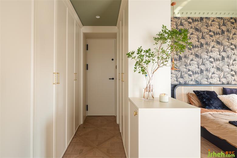 金色竹節(jié)的美好蘊意藏在裝飾畫和衣柜門把手上,裝點精致空間。