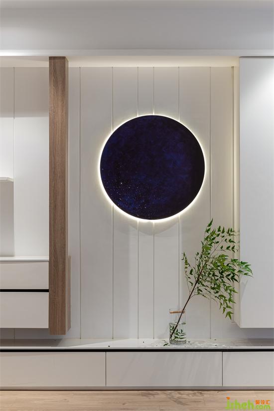 沒光的星空是寧靜神秘的,帶光的星空就像夜空的月亮,溫柔清冽。深圳豪峰園家裝設(shè)計(jì)在觀賞功能上,背景以左上的裝飾造型與右下的觀影媒介為視覺均衡,塊面體的適當(dāng)留空讓整個造型墻充滿呼吸感和靈動氣息。