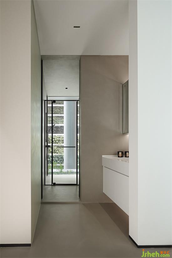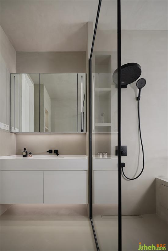 鄰建筑群的一面是小區(qū)階梯式垂直綠化,開闊的格局為室內(nèi)引入不同的治愈景觀,海府壹號(hào)家裝設(shè)計(jì)微水泥通刷的三分離衛(wèi)浴空間盡顯簡(jiǎn)約質(zhì)感和格調(diào)。