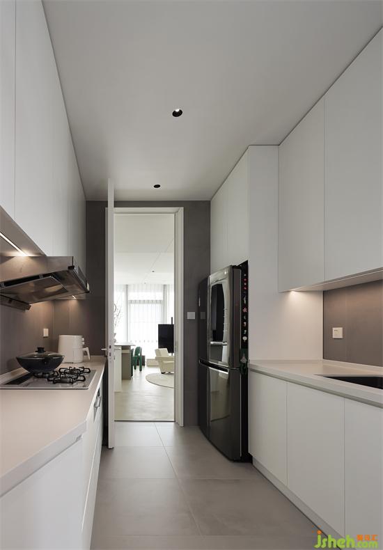 中西廚分離,海府壹號(hào)家裝設(shè)計(jì)為居住者的休閑生活提供了更多的便利,廚房雙一字型布局留出通往陽臺(tái)的過道,動(dòng)線簡(jiǎn)單功能清晰。