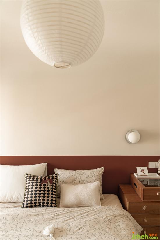 床頭壁燈和吊燈是相同的形態(tài),形式上卻是極簡金屬與和風紙兩種不同感受的材質對比。家裝設計多樣和統(tǒng)一的元素融合成就豐富和諧的空間語匯。