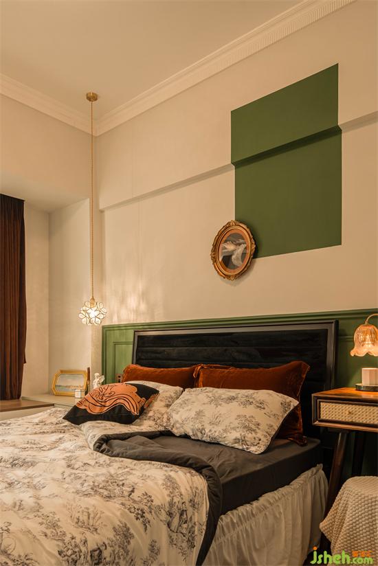 精致典雅與自然留白的臥室布置,更具法式浪漫韻味,怡楓園家裝設計以花為造型的燈飾,高級印花與復古絲絨的床品搭配,無盡溫柔。
