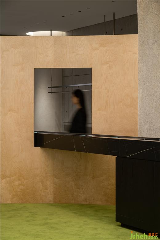 踱入其中,自然意象經(jīng)由材質(zhì)組合實現(xiàn)解構(gòu)與傳遞?;炷痢摻?、光在此融于一體,專賣店設(shè)計打破空間固有格局,從受眾體感出發(fā),完成空間氛圍營造,向進入者傳遞舒適而自如的場域信號。并通過貼合品牌品味與風(fēng)格調(diào)性的軟裝選品、色彩配比實現(xiàn)具象感知承載,由表及里,于環(huán)狀空間之中縱延鋪開,傳遞屬于hug熟悉而充滿驚喜的觀覽體驗。