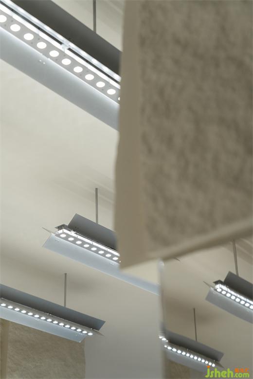 頂部擬態(tài)礦場作業(yè)有序排列的照明燈,縱深延展,以此劃分空間區(qū)域,實(shí)現(xiàn)動(dòng)靜相融。
