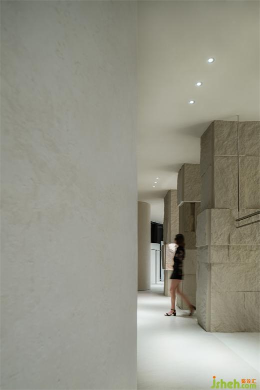 雖并非純粹的自然之物,卻能將自然界中帶有原始意向的極致美感,展廳設(shè)計(jì)通過大塊面的運(yùn)用與陣列排布加以呈現(xiàn)。