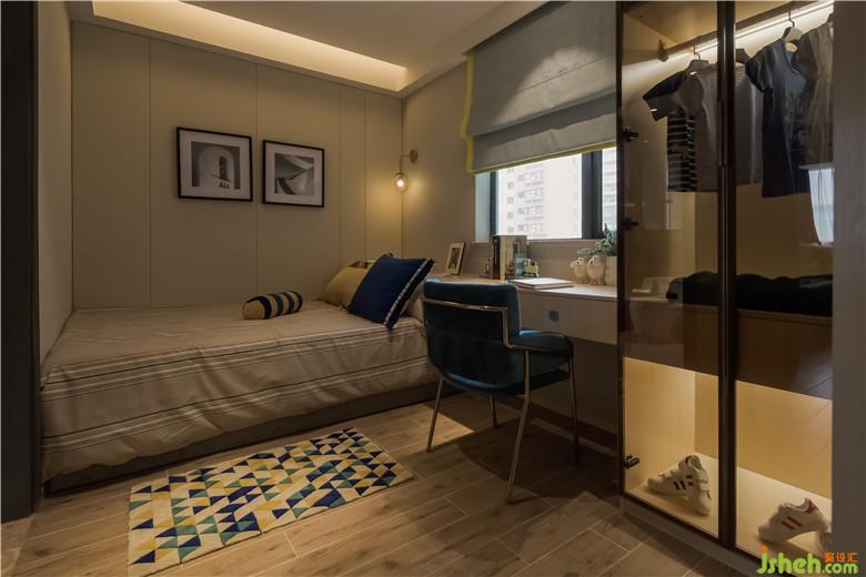 主人房舒適寬敞,簡單的而富有質感的床頭靠背造型突顯低奢的氣息,衣帽間與主浴室都有一定程度上的開放出來,佛山裝修公司增加了空間感的同時又藝術了空間。兩個小臥室可開可合,連通了空間的同時又連通了兩間房間的人的關系。
