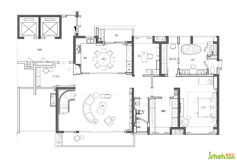 優(yōu)雅的弧線和質(zhì)感十足的材質(zhì)佛山現(xiàn)代復式設計