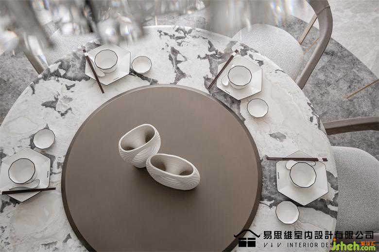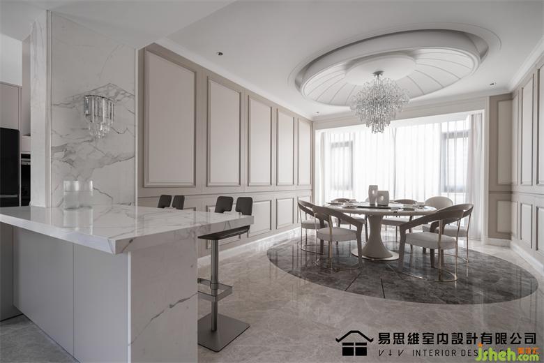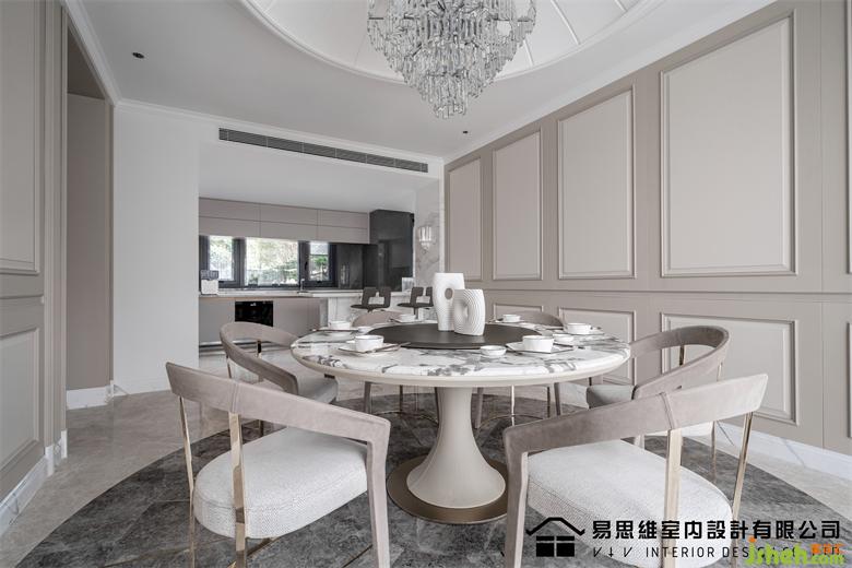 在經(jīng)典的造型與現(xiàn)代舒適感之間找到其節(jié)奏。別墅設計材質(zhì)輕微細膩的變化給空間帶來活力與藝術的展現(xiàn),低調(diào)有機的完美結(jié)合。穹頂天花與地面拼花形成時空的圍合,包裹著聚餐的歡愉時光,成為物理、感官、情緒相互相融的容器。