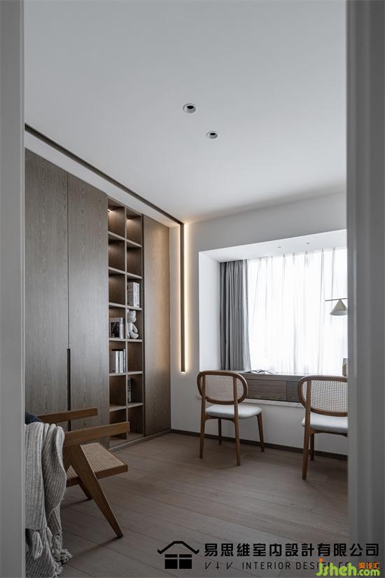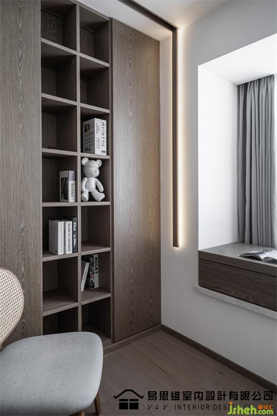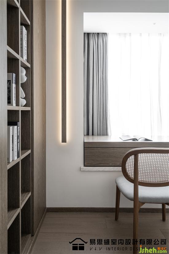 “寧靜致遠”━━當(dāng)木頭這種材質(zhì)以不同的形態(tài)在同一空間出現(xiàn),不可避免的陷入視覺對比。在這里,暖灰調(diào)的木地板和墻面山紋的柜體都以大塊面呈現(xiàn),木制家具少而精致,空間的立體感得以強化,也使對比有了主次之分。家裝設(shè)計燈光利用凸與凹的契合,虛與實的互換,設(shè)計表達的巧妙而自然。