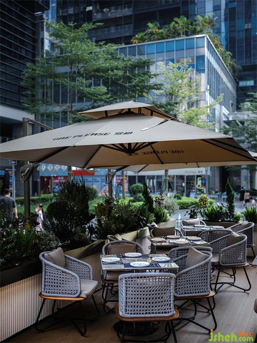 表面上習慣現(xiàn)代快節(jié)奏生活的都市人,何嘗不希望疲憊的身心能夠短暫棲息。深圳俄式餐吧設計綠意簇擁的外擺區(qū)旗幟鮮明地表達著空間的自然天性,日暮向晚,其中片刻,在自然舒緩的用餐氛圍中,享受珍貴的慢與寧靜。