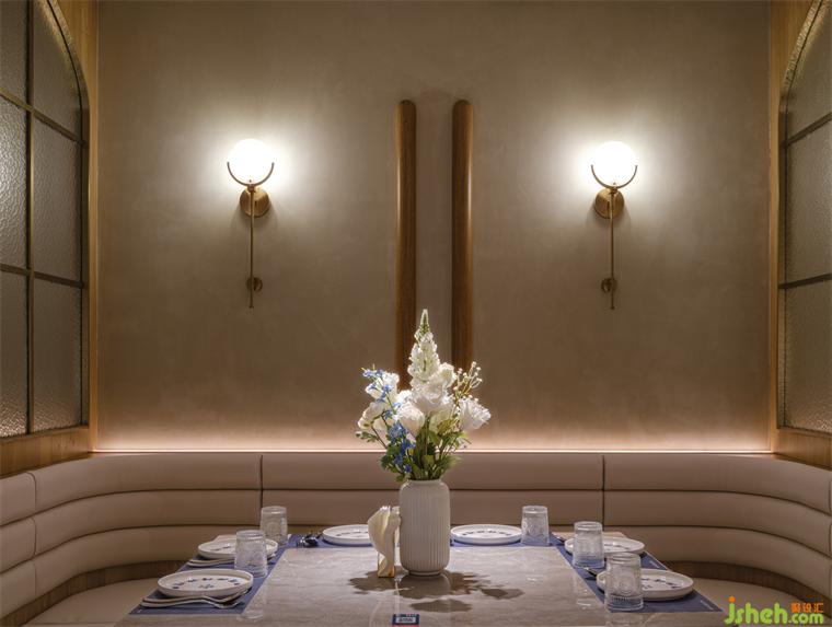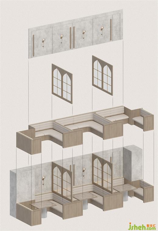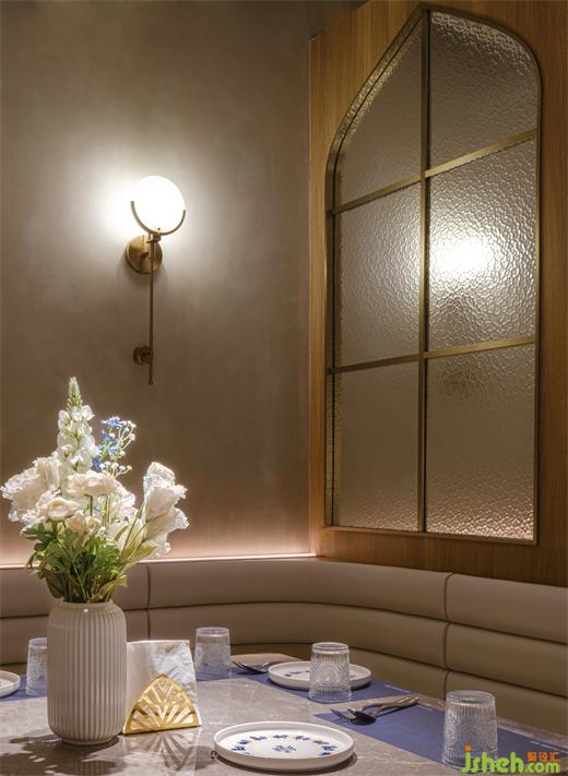 二樓定位于聚會(huì)空間,呼應(yīng)大門采用經(jīng)典的“洋蔥頭”——俄羅斯圓穹建筑造型的非透明玻璃窗格作為隔斷,深圳俄式餐吧設(shè)計(jì)保障私密性的同時(shí),渲染著獨(dú)特的文化氣氛。