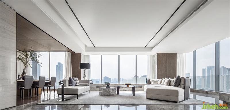 尋一處愜意的景致,進(jìn)一步是城市的色彩,退一步是向往的生活。客廳層次豐富,樣板房設(shè)計(jì)是以功能性和實(shí)際生活美好體驗(yàn)雜糅匯集的手法打造,包裹著藝術(shù)使命和自由意志。