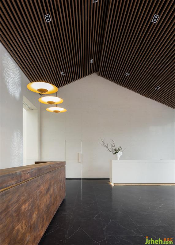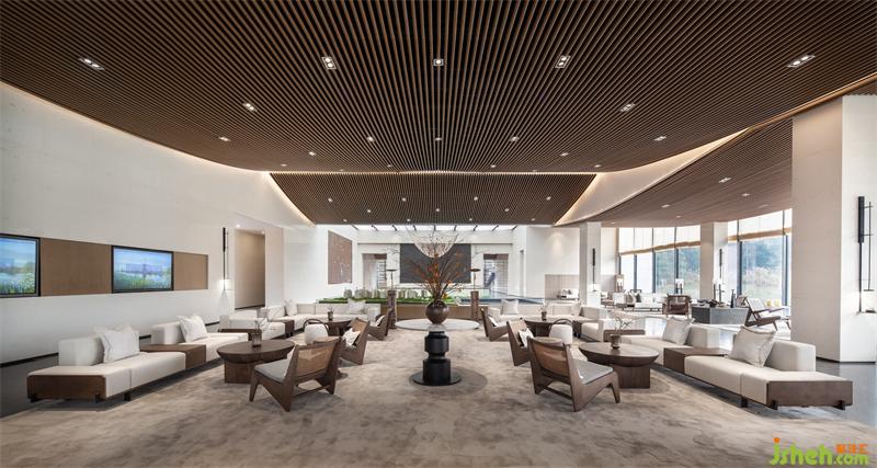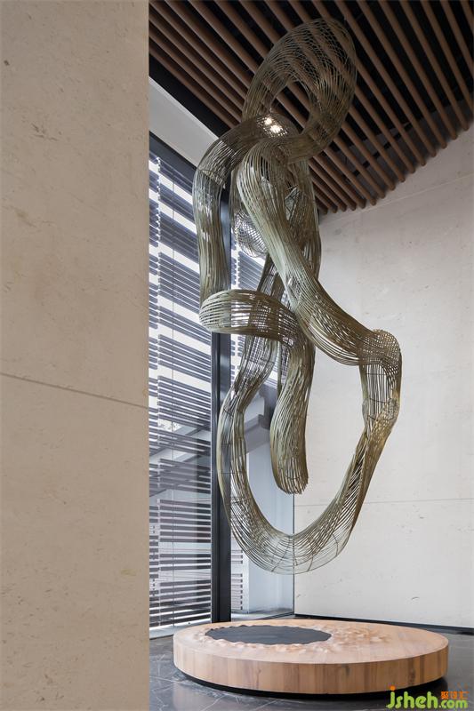 隨著廊道深入,洽談區(qū)的線條、肌理、曲直逐漸在視野中層層呈現,穿行其間,在自然、光影、色彩的起伏中感受情緒與空間形成共鳴的收放氣質。
