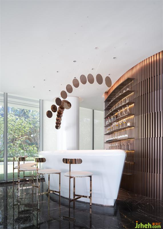 大理石、金屬和皮革構(gòu)成的家具飾面,軟硬結(jié)合,訴說出空間流動的語言。