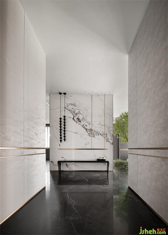 從潑墨大尺度磚體鋪設(shè)而入,玄關(guān)以開門即見的大空間氣度,開啟輕奢美學(xué)的現(xiàn)代浪漫生活。