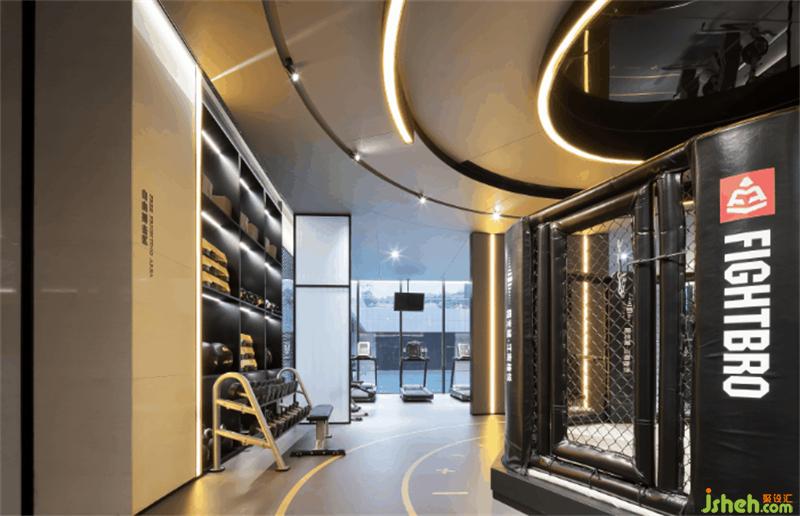 經(jīng)由場(chǎng)景的轉(zhuǎn)化與過(guò)渡,健身空間以邕江水蜿蜒形態(tài)定義「自然與能量」,賦予其沉浸式的藝術(shù)舒享氛圍。開(kāi)放式器械圍繞搏擊臺(tái)形成圍合,線(xiàn)型燈飾構(gòu)就藝術(shù)矩陣,于空間中流轉(zhuǎn)著意蘊(yùn)無(wú)盡的活力氣息。