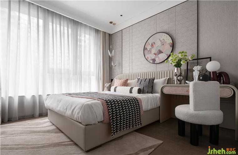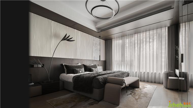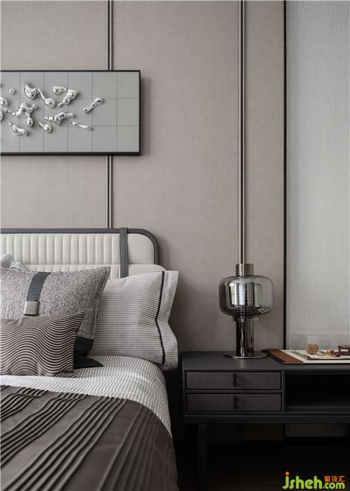 空間承載的是一種實(shí)實(shí)在在的生活。老人房延續(xù)摩登東方的設(shè)計(jì)理念,樣板房設(shè)計(jì)整體采用弧形細(xì)節(jié)收口,保證了功能獨(dú)立的同時(shí),又強(qiáng)化了整體延續(xù)性。床頭背景提取東方元素,墻布硬包造型墻體搭配細(xì)膩的床品織物肌理,雅致而內(nèi)蘊(yùn)。