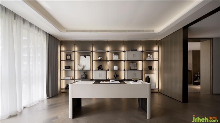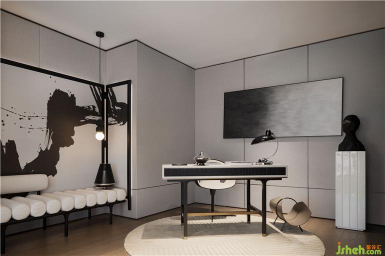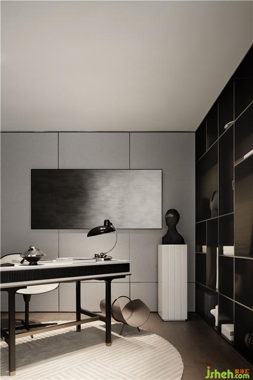書房將藝術(shù)氣息植入現(xiàn)代審美中,樣板間設(shè)計(jì)以直白簡(jiǎn)約的黑白色系,主導(dǎo)了一場(chǎng)思維的化學(xué)實(shí)驗(yàn),在抽象式的藝術(shù)手法下,承載了辦公、學(xué)習(xí)、會(huì)客、小憩等多重功能。