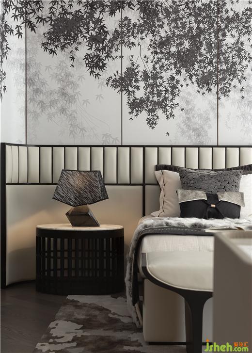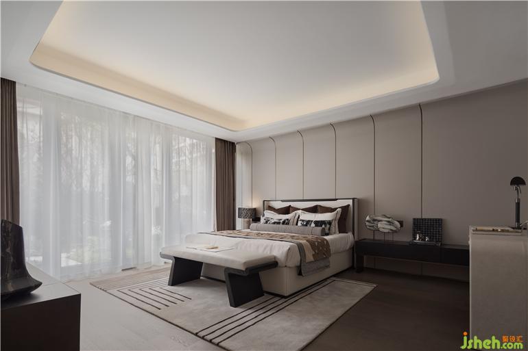 老人房雅奢兼?zhèn)洌尘皦Σ捎么髩K面弧形拼接,樣板間設(shè)計(jì)呈現(xiàn)出多層次的觀感,充分回應(yīng)返璞歸真的訴求,溫暖從容。