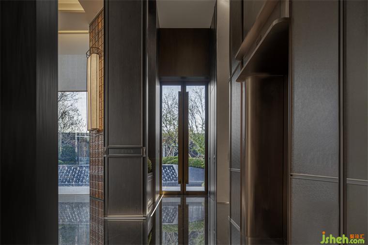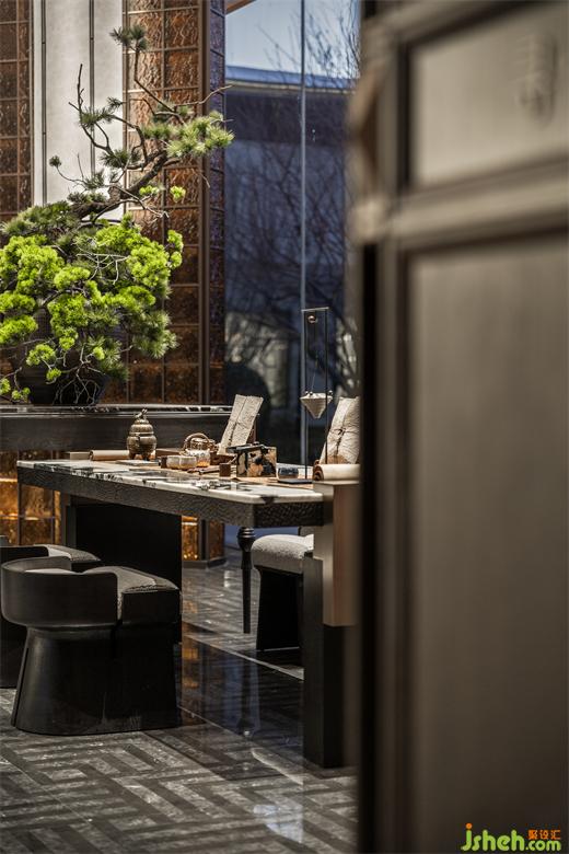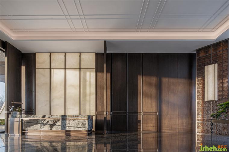 區(qū)別于多數(shù)營(yíng)銷中心中清新明快的色調(diào),采用了大面積深色山紋木,以增加這樣一座歷史名城中營(yíng)銷中心的歷史厚重感和文化氣蘊(yùn)。