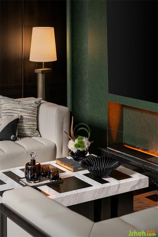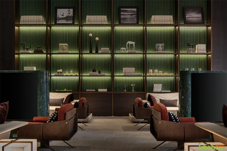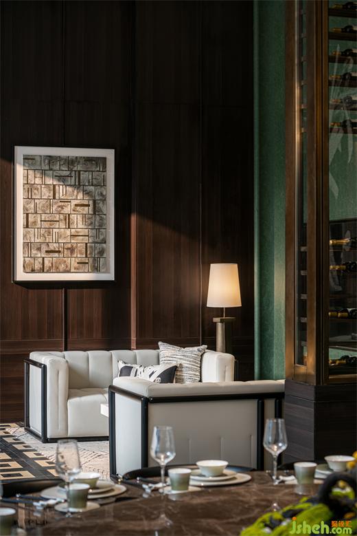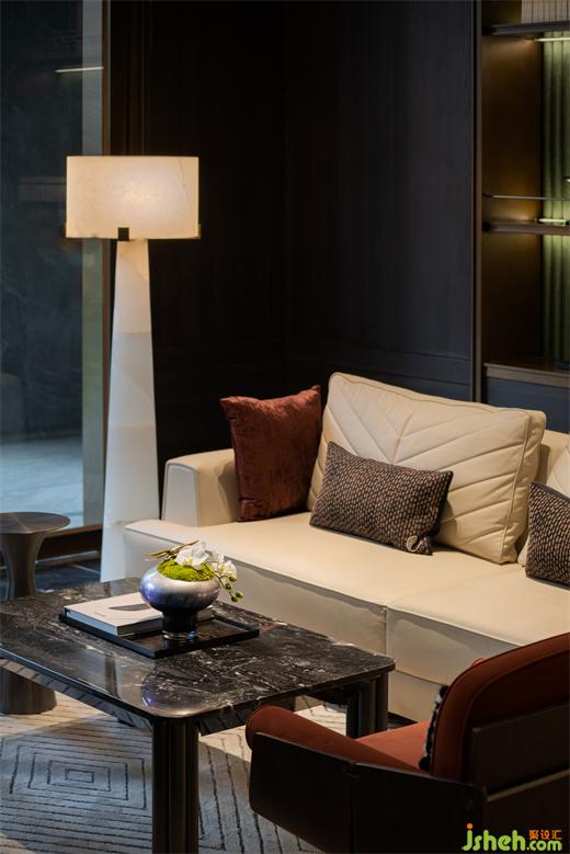 洽談區(qū)可視為容納多元生活方式的圈層社交場。營銷中心設(shè)計(jì)不同材質(zhì)的肌理性格營造出不同的空間節(jié)奏,疏而不空,滿而不溢,因場景而生的沉浸式體驗(yàn)亦在此展開。