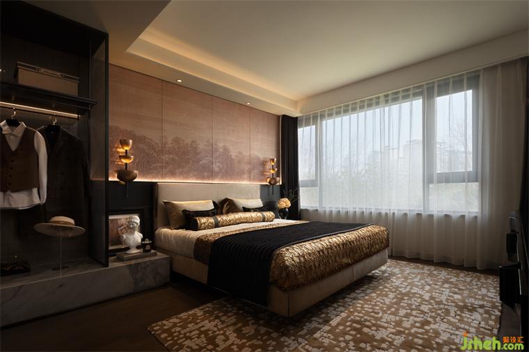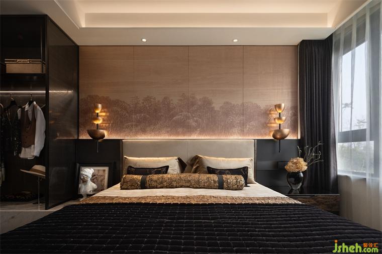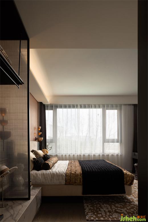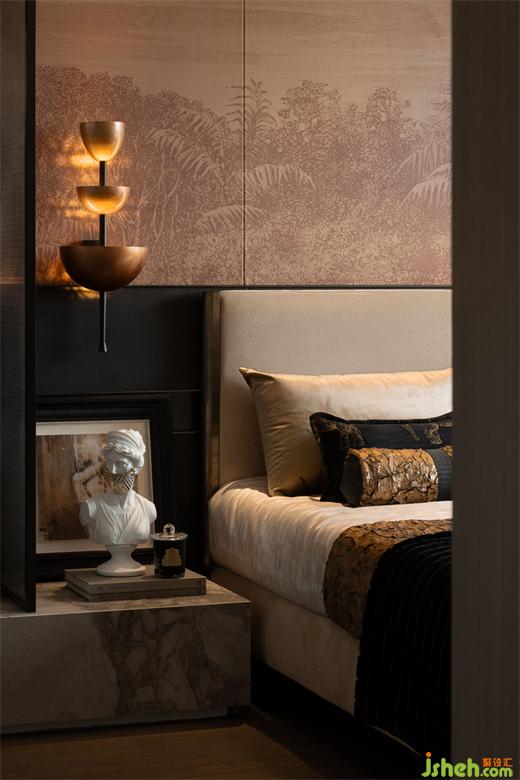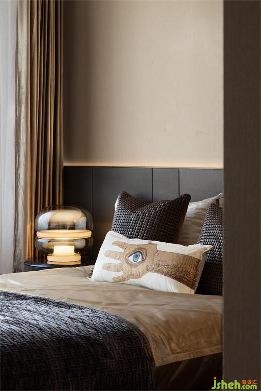 次臥整體色調(diào)以淺色為主,輔以深色腰線軟包與藝術(shù)擺件、燈具,若隱若現(xiàn)間幻化為一段不同情緒的悠揚(yáng)旋律。