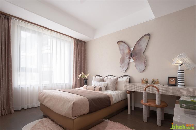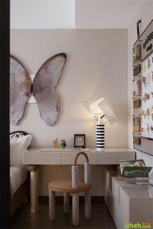 兒童房是屬于孩子的小小世界,床頭背景的絢麗彩蝶,帶動(dòng)著空間浪漫靈動(dòng)的氛圍,在自然童趣的裝飾下,樣板間設(shè)計(jì)開啟了童話世界的奇妙之旅。