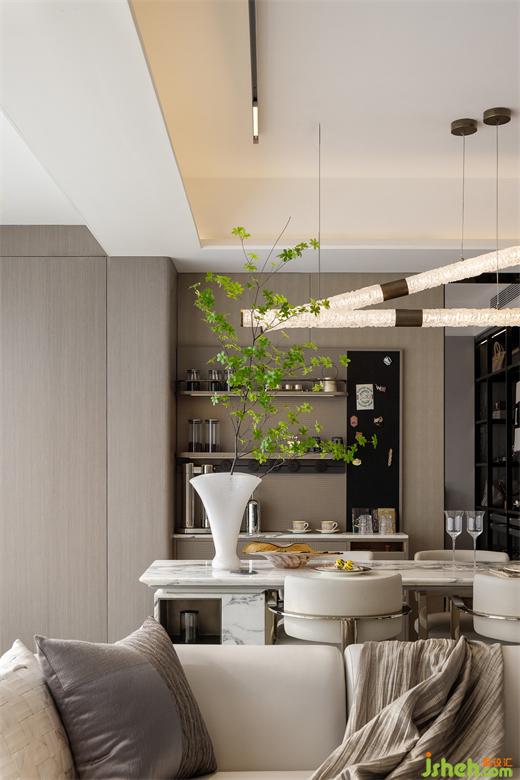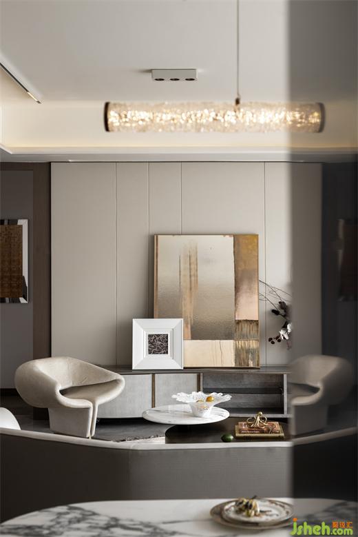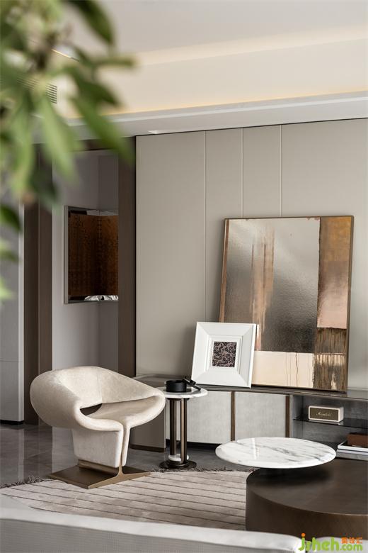 客廳是以一種溫暖而精致的方式,實(shí)現(xiàn)空間布局與使用功能的完美融合。整體以溫潤(rùn)質(zhì)感和灰白調(diào)為主。素樸的用色、純粹的材質(zhì),生活的美妙,盡在設(shè)計(jì)細(xì)微處,盡在雋永美學(xué)中。