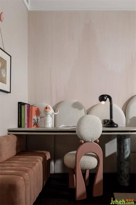 女兒房以低飽和的粉色為主基調,呈現(xiàn)溫暖柔和感,充滿童真與童趣。
