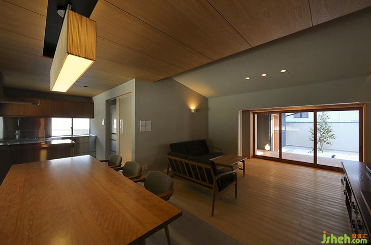 一個(gè)開(kāi)放和寬敞的露臺(tái)被布置在房屋建筑群的中間,作為新舊部分的交叉點(diǎn),以及內(nèi)外空間。從新段、走廊、舊段均可進(jìn)入露臺(tái),新舊兩部分協(xié)調(diào)一致。另外,陽(yáng)臺(tái)屋頂延伸到客廳,仿佛要顯示陽(yáng)臺(tái),走廊和用餐區(qū)是一個(gè)相連的房間。