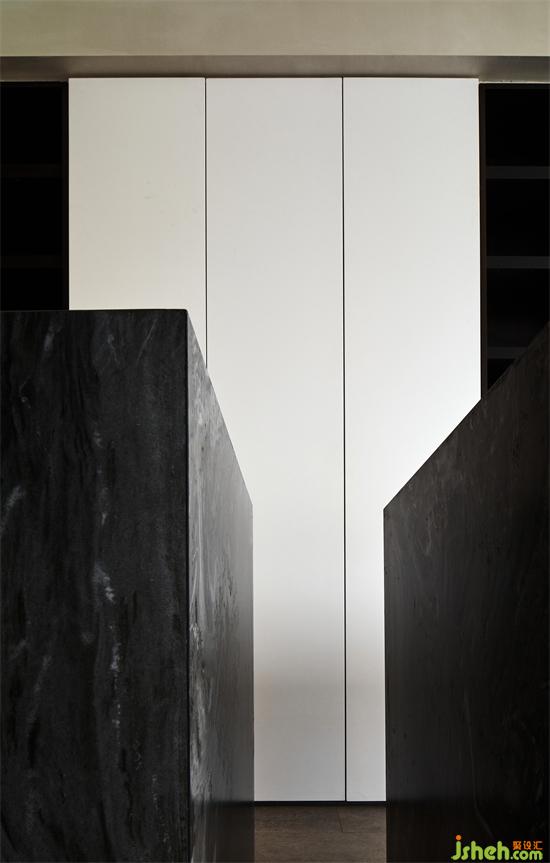 多樣化的材質(zhì)串聯(lián)豐富了空間的層次關(guān)系,不銹鋼、洞石與巖板的對話讓空間多了幾分冷靜。
