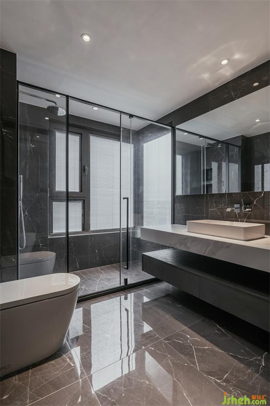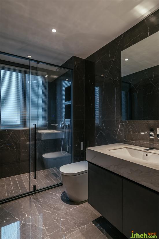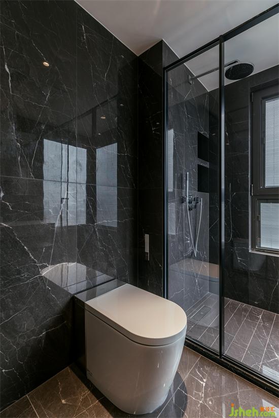 而衛(wèi)生間則采用冷靜的家裝設(shè)計(jì)手法,黑色的板巖白色的陶瓷,現(xiàn)代又簡潔。