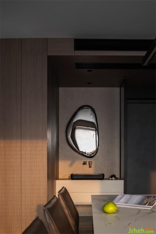 Introducing light into the room is a way for us to pursue nature. The size of the large bay makes it easy to introduce more light into the room. In the evening, a touch of setting sun is poured into the room through the shutters. The strong atmosphere created by dindar's light makes the residence shining at this moment.