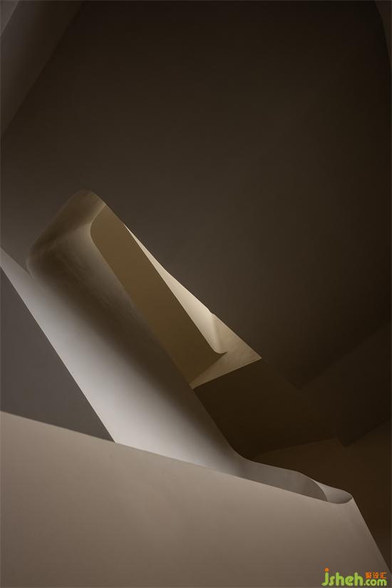 文首提到的這個建筑小品便是住宅的樓梯。景瑞無雙別墅設(shè)計原有的建筑樓梯狹窄閉塞,在進行土建擴改之后才形成具有一定舒適感的功能載體。