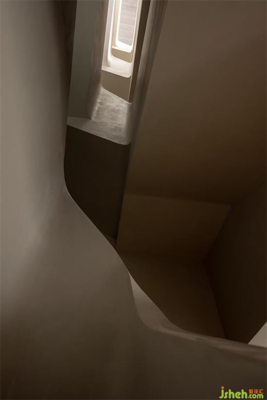 樓梯貫穿至地下空間,則再無(wú)多余材質(zhì),微水泥溫潤(rùn)的包裹著相對(duì)幽暗的空間。純粹的設(shè)計(jì)也彰顯了無(wú)即萬(wàn)象的禪宗思想。