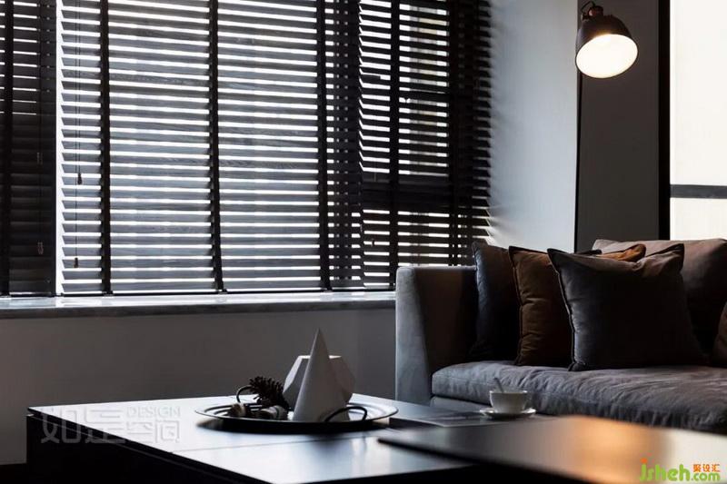 百葉窗下一角落,逆光下,透出十足冷酷感