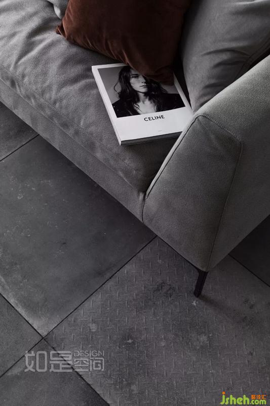 客廳地磚局部采用仿鋼板水泥磚,工業(yè)味十足,凸顯懷舊文化與個(gè)性碰撞所衍生出的獨(dú)特氣質(zhì)