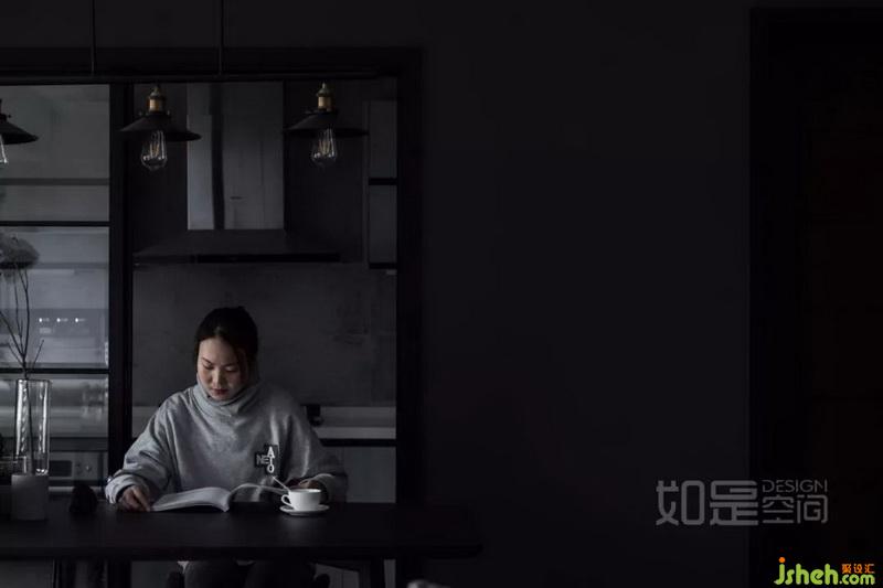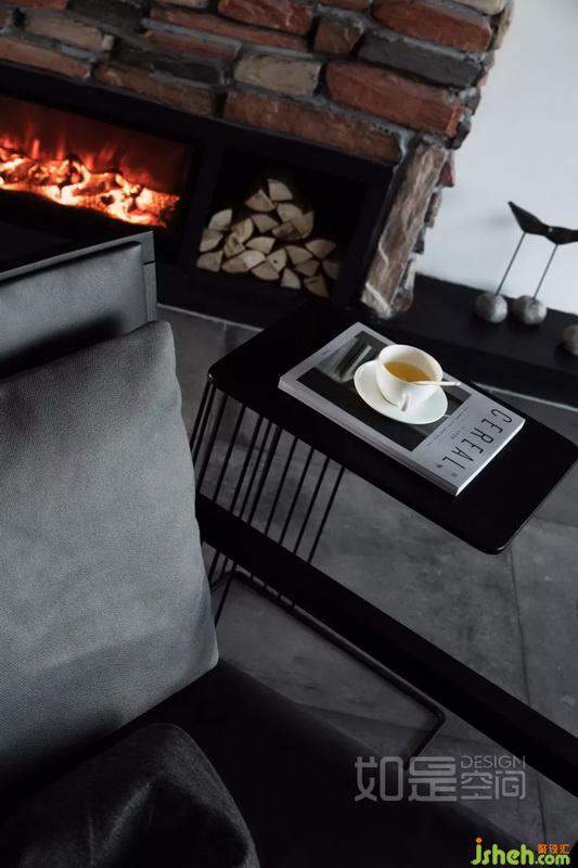 裸磚配以壁爐,帶來(lái)別樣的粗獷之美。同時(shí),這里的紅磚、壁爐、棕紅色系抽象畫,讓黑白灰主基調(diào)的空間更有居家感,避免過(guò)于冰冷而失去溫度。