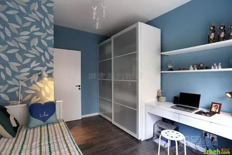 書房空間比較小,ab版的墻紙?jiān)谛⌒】臻g中局部起到點(diǎn)綴作用又顯得整體不凌亂,溫馨感十足。