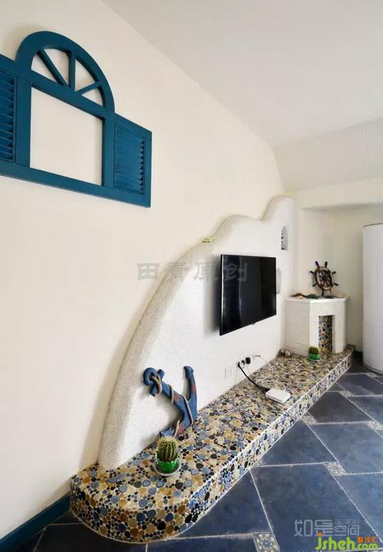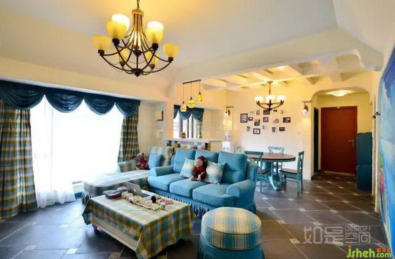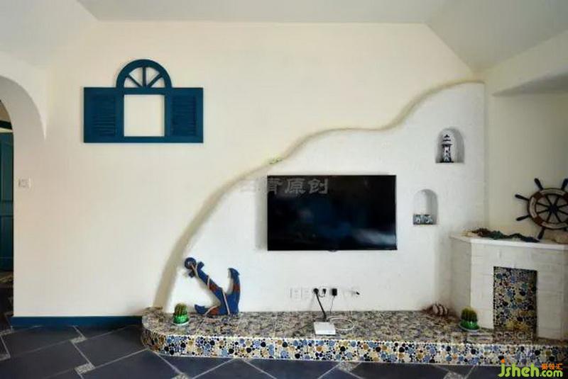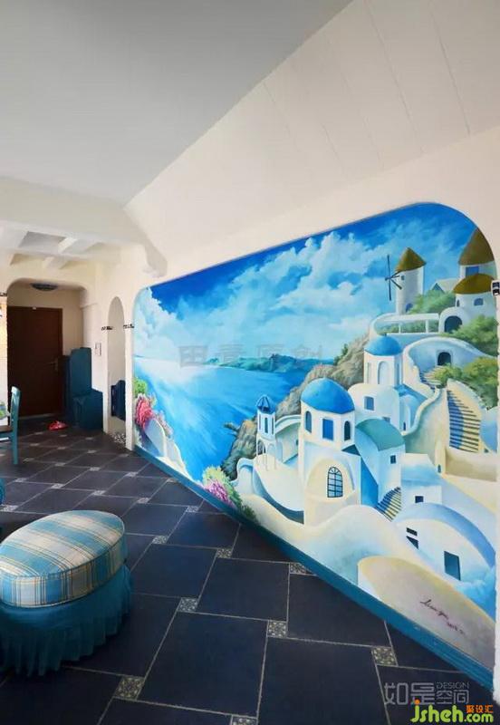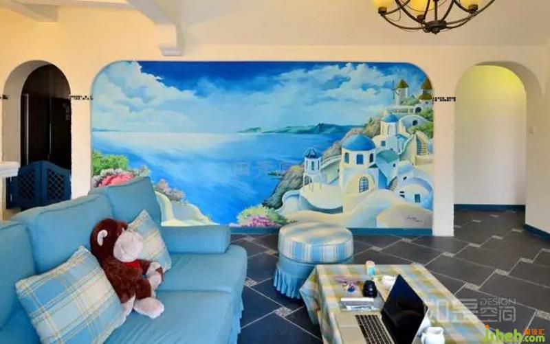 特色:本案除了具備地中海風(fēng)格的普遍特征之外,最突出的特點是:以其豐富的色系,構(gòu)成色彩斑斕的感覺。特別是手繪背景墻,凸顯了其家特有的美術(shù)氛圍。