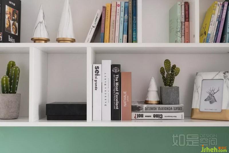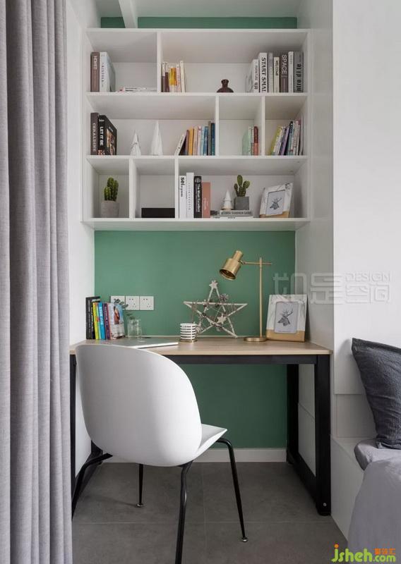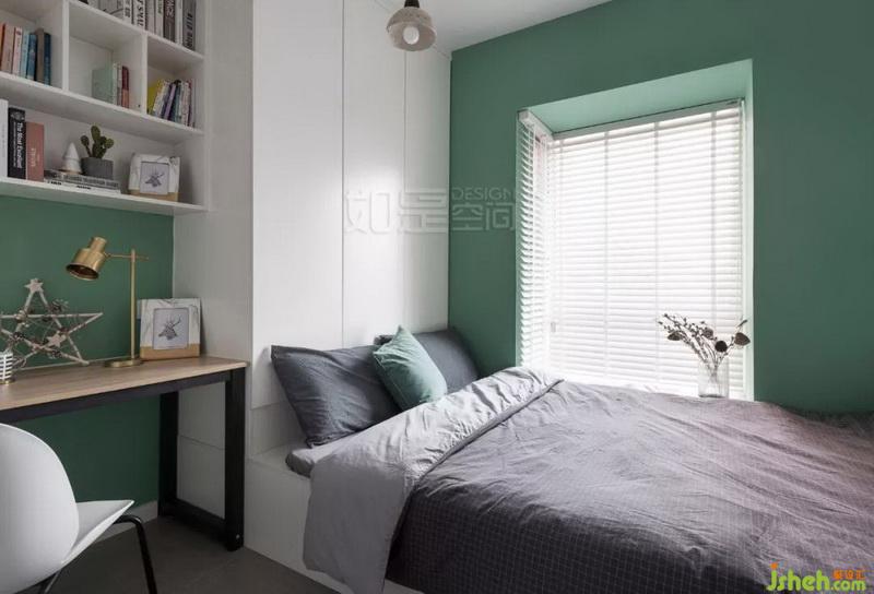 局部灰綠色,其明度和純度都較低,不會綠到刺眼,能為空間帶來低調(diào)、安寧的氛圍