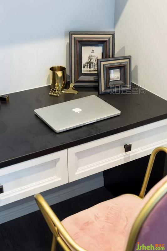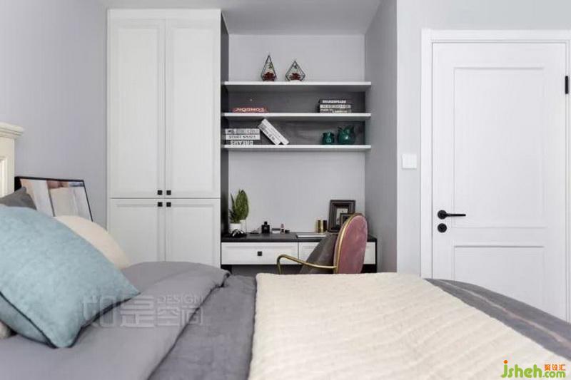 主臥未設(shè)置大尺碼衣柜(另利用小臥房做專門衣帽間),這為主臥帶來(lái)了更多的開闊適意感,同時(shí)也為小書桌與書柜贏得了空間。