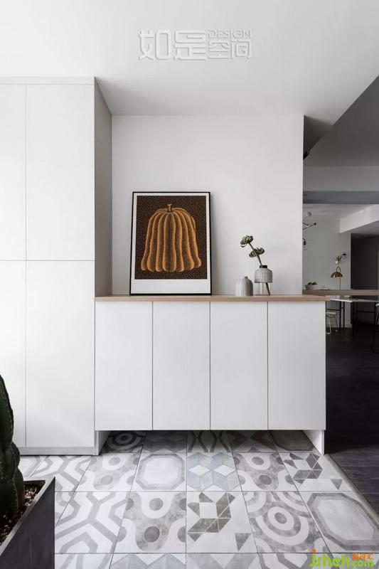 入戶地面用花磚鋪貼,既可以和客餐廳形成明顯區(qū)隔,同時也讓地面更方便打理,符合入戶區(qū)的功能性